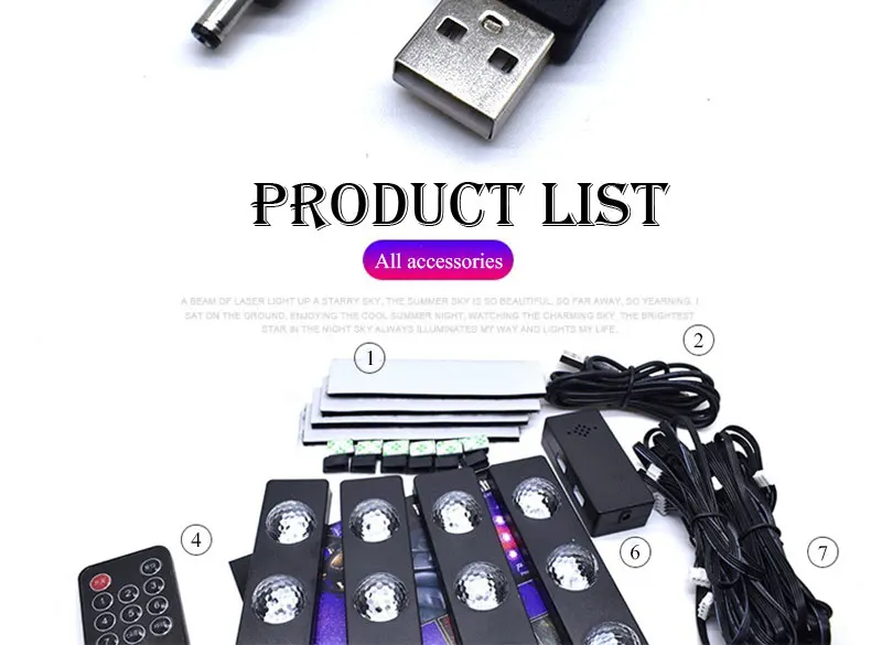 Особенность:Совершенно новый и высококачественныйУниверсальный для автомобилей/ПК/компьютера/портативный аккумулятор/мобильный телефон с USB поверхностьюСмешной и красный красочныйВоспроизведение и подключение, простота использованияСветодиодный атмосферсветильник, светильник, внутренний декоративный свет s, аварийсветильник s, DJ светильник sРежим дыхания: ножная лампа будет постепенно превращаться светильник и темное, образуя режим дыхания сцинтилляции.Семицветный цикл: источник цветсветильник меняется непрерывно.Музыкальная ходьба: огни мерцают по очереди, индуцированный звуком ритм мерцает, звук не мерцает медленноГолосовое управление избеганием светильник: звуковой индукционный ритм мигает, без звука не яркийХарактеристики:Напряжение: 5-12 ВСрок службы: 10000 часов вышеМощность: 3,2 ВтМатериал: ABSЦвет: ЦветнойРазмер: 133 мм/5,23 дюйма x 35 мм/1,38 дюймаПримечание:1. Замеры сделаны вручную, поэтому возможны отклонения на 0,1-0,3 см.2. Пожалуйста, примите во внимание, что из-за разницы в освещении или мониторе компьютера изображение может не отражать фактический цвет изделия. Спасибо!Посылка входит:1 x Звездные огни для ног автомобиляПримечание: Батарея не входит в комплект