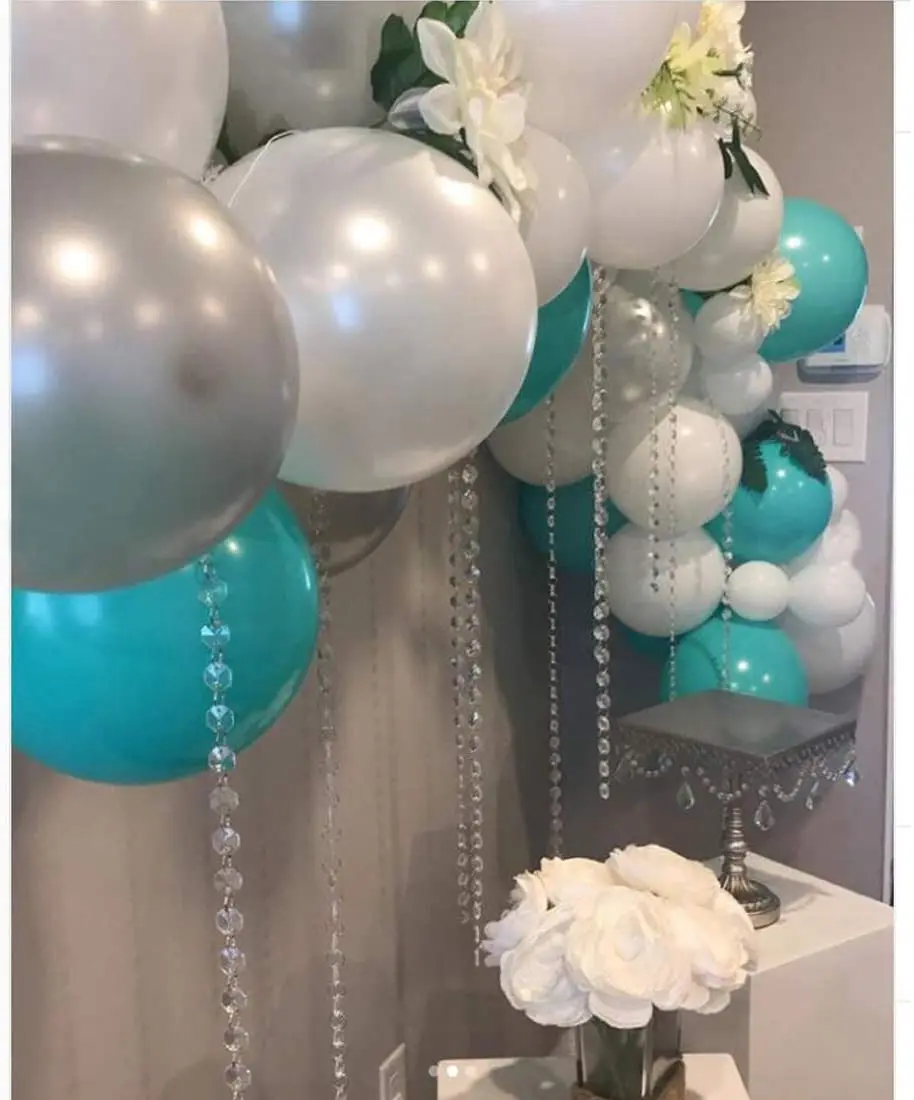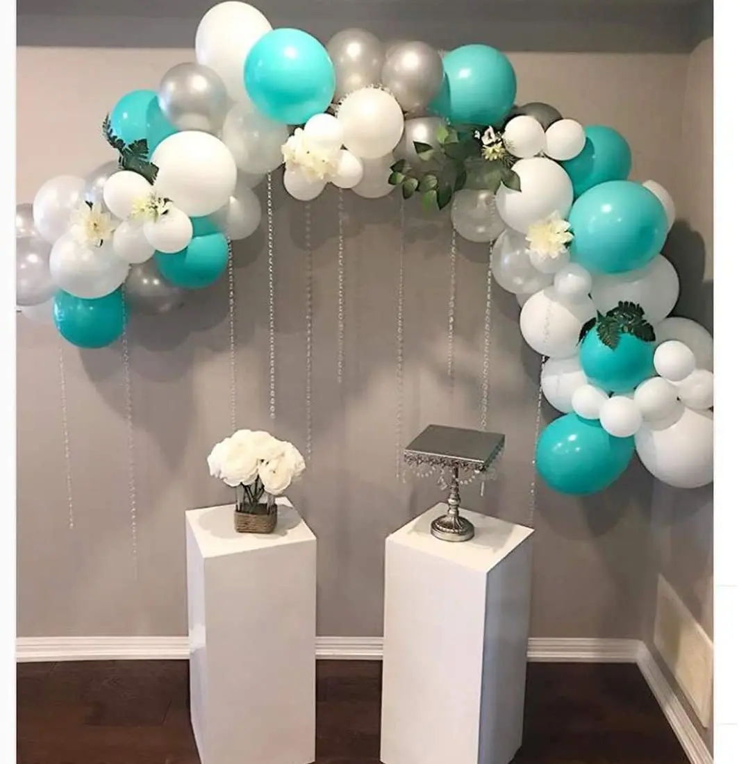 Арочный комплект мятных шаров-бирюзовые шары 12 дюймов, золотые шары 12 дюймов, белые шары 12 дюймов, серые жемчужные шары 12 дюймов, 1 пластиковая лента для воздушных шаров, 1 клей для воздушных шаров, 1 лента