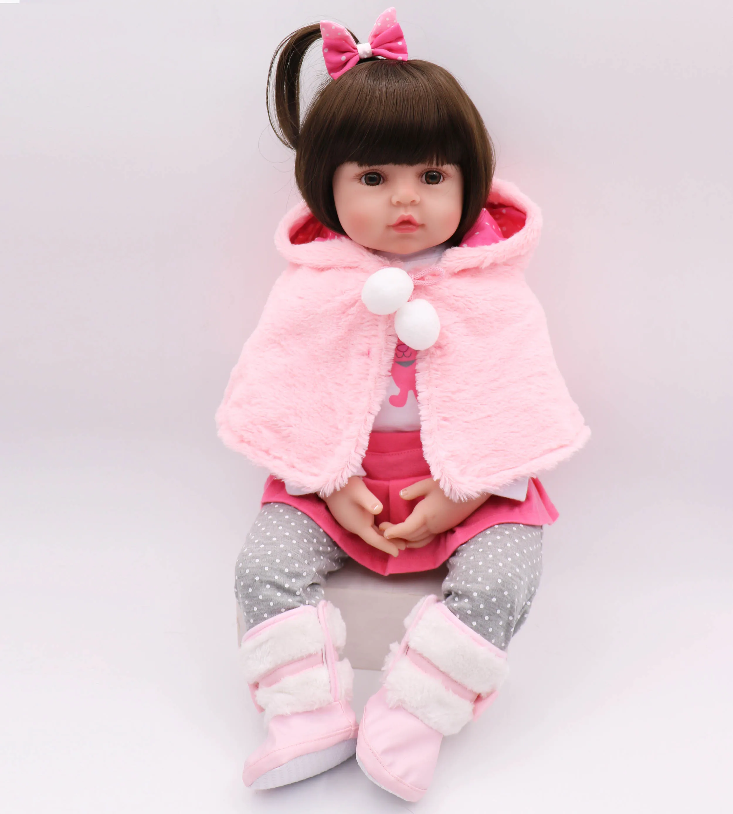 ❤️Size: 24 дюйма, Вес: около 1,8-1,9 кг ❤️Material: мягкая винила и ткани тела ❤️Hair: высококачественный парик каштановые волосы ❤Красивый набор для рук карие глаза, ручная роспись деталей и нанесение ресниц вручную ❤️Package включает в себя: возрождающая Кукла * 1 розовый пелериной накидка * 1 с вышитым кроликом Топ * 1 бант заколка для волос * 1 пятнистый Штаны * 1, розовый; Большие размеры (* 2 розовая юбка * 1 подгузники * 1