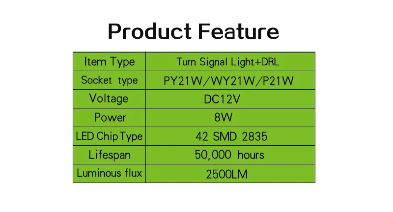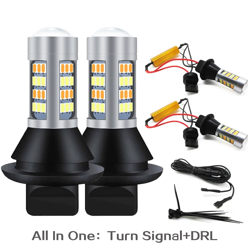 1 комплект включает: 2 светодиодных лампы и 1 контрольную линейную группу Все в одном drl с функцией поворотников: 1. Розетка: 7440/T20/WY21W,PY21W/BAU15S,P21W 2. Виды: дневной ходовой светильник с поворотом 3. Светодиодный чип: 2835 42SMD высокой мощности 4. Напряжение: DC9-12V 5. Мощность: 8 Вт 6. Гарантия: 3 года Лампа Цвет: Светильник сигнала поворота: желтый Дневной ходовой светильник: белый/красный/синий/голубой/розовый/желтый 1. Желтый + белый; 2. Желтый + красный; 3. Желтый + синий; 4. Желтый + светло-голубой; 5. Желтый + розовый; 6. Желтый + желтый Примечание: желтый/янтарный-это поворотный цвет, другой цвет-цвет drl.