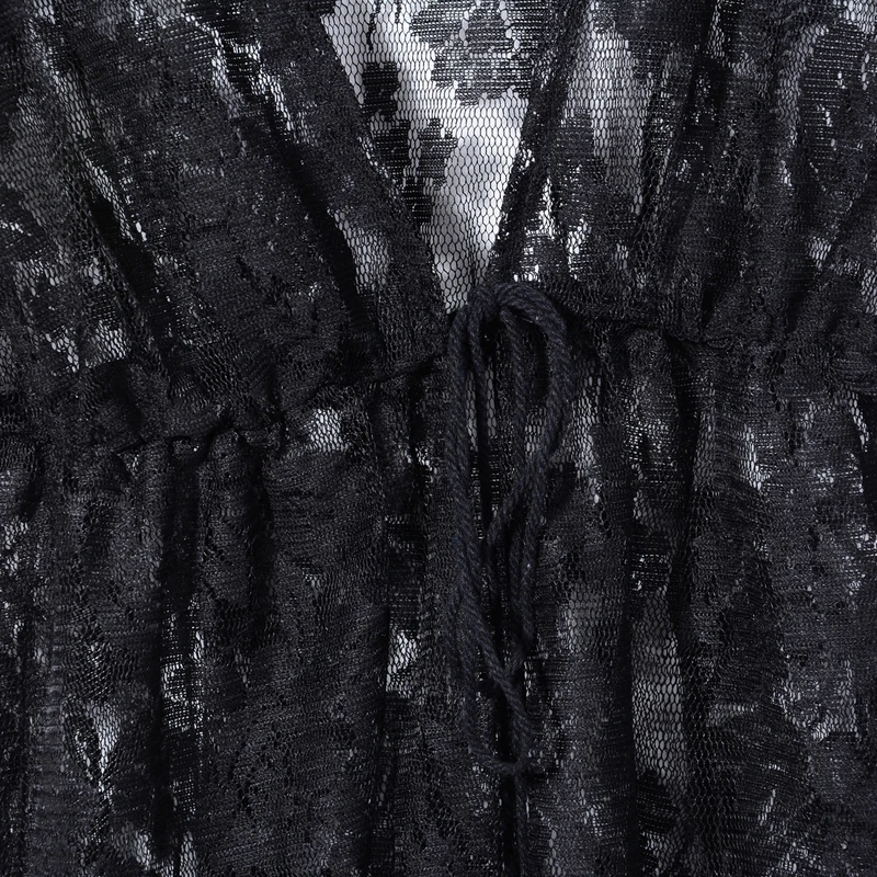 Features:Lace solid color long sleeve design, loose large size swimwear blouse, perspective deep V is very sexy, make you appealing and extremely flattering