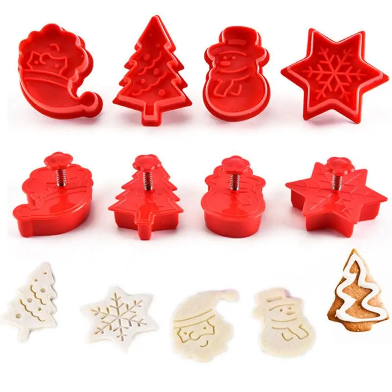 Новинка 4 шт. формочки для печенья 3D плунжеры для печенья DIY формы для выпечки рождественские формочки для печенья