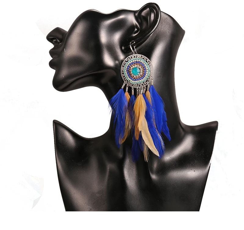 Женские серьги Badu, увеличенные серьги в богемном стиле с перьями, инкрустированные кристаллами, цирконием, богатые цвета, ювелирные изделия, классический подарок