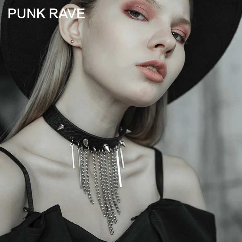 Панк рейв девушка Темный панк ожерелье элегантный темперамент шпилька металлическая подвеска с кисточкой Воротник женские аксессуары
