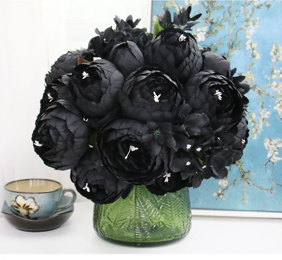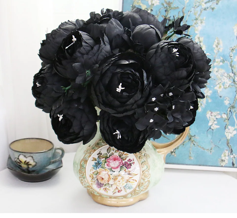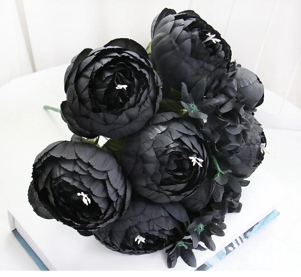 12 головок Черный Пион Гортензия роза искусственный цветок букет домашний декор DIY свадебный цветок настенные материалы фото реквизит оптовая продажа