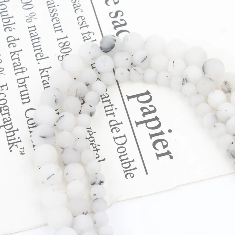 Items Name:Natural Matte Black Spot White Jades Round Loose Beads For Jewelry DIY Making Bracelet Charms Accessories 15''Strand 6 8 10 12mm
