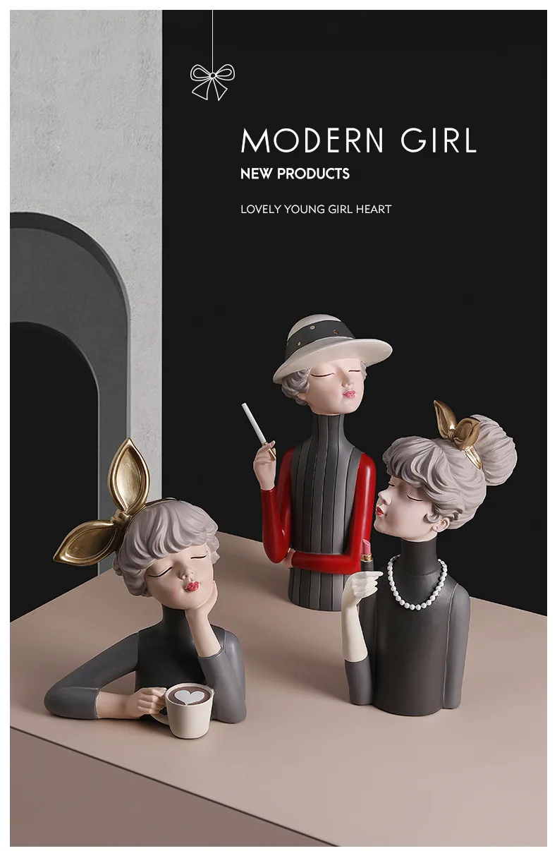 Современная роскошная Статуэтка из смолы с бантом для девочек, украшение для дома, статуэтка для хранения бюста, статуя для украшения комнаты, свадебные подарки