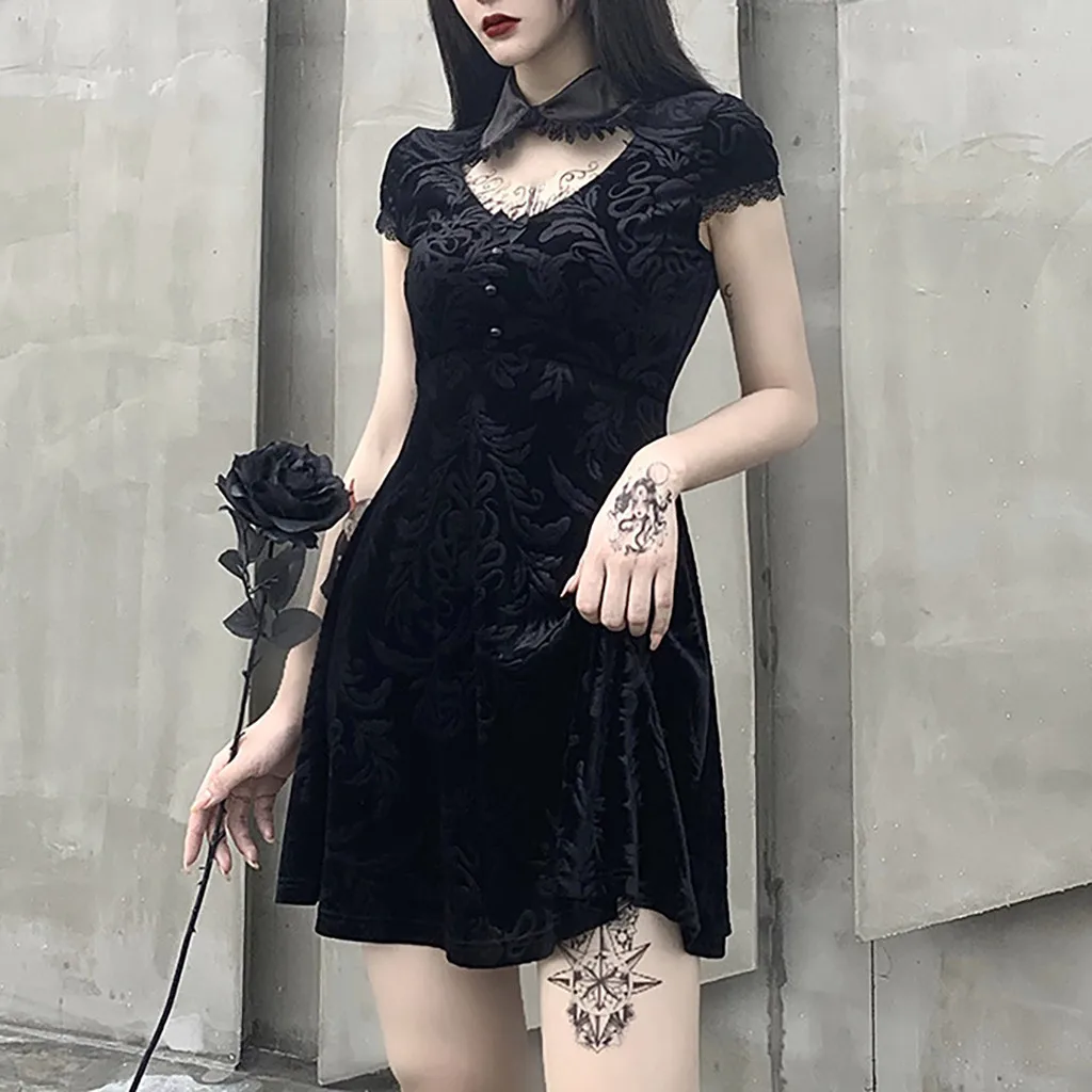 Женское летнее платье с воротником Питер Пэн, кружевное готическое платье с короткими рукавами и пуговицами в стиле панк