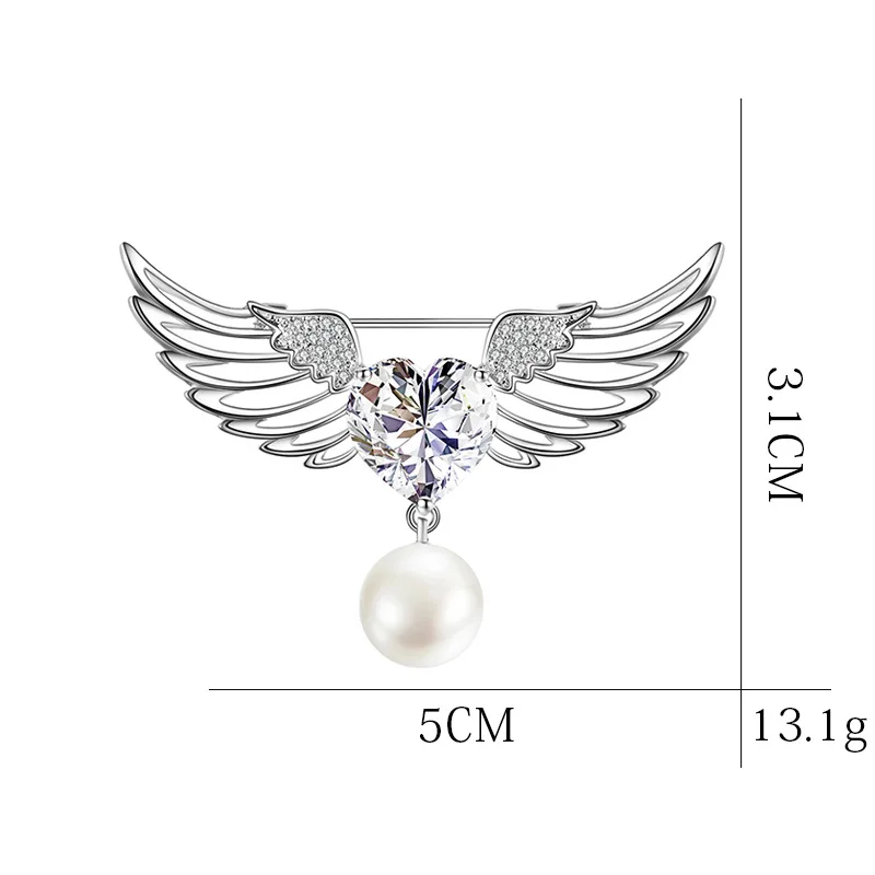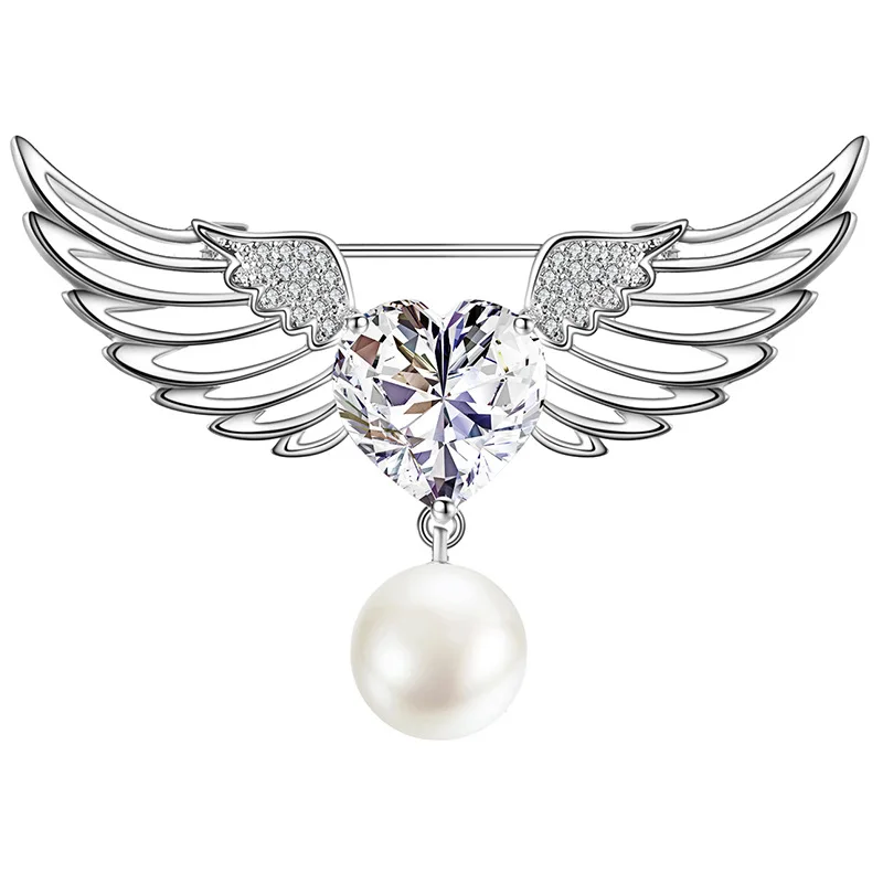 Женская Брошь в виде крыльев Ангела, перьев, для женщин, сердце, кристалл, стразы, жемчужная булавка, циркония, ювелирное изделие, роскошная Пряжка для шарфа, аксессуары