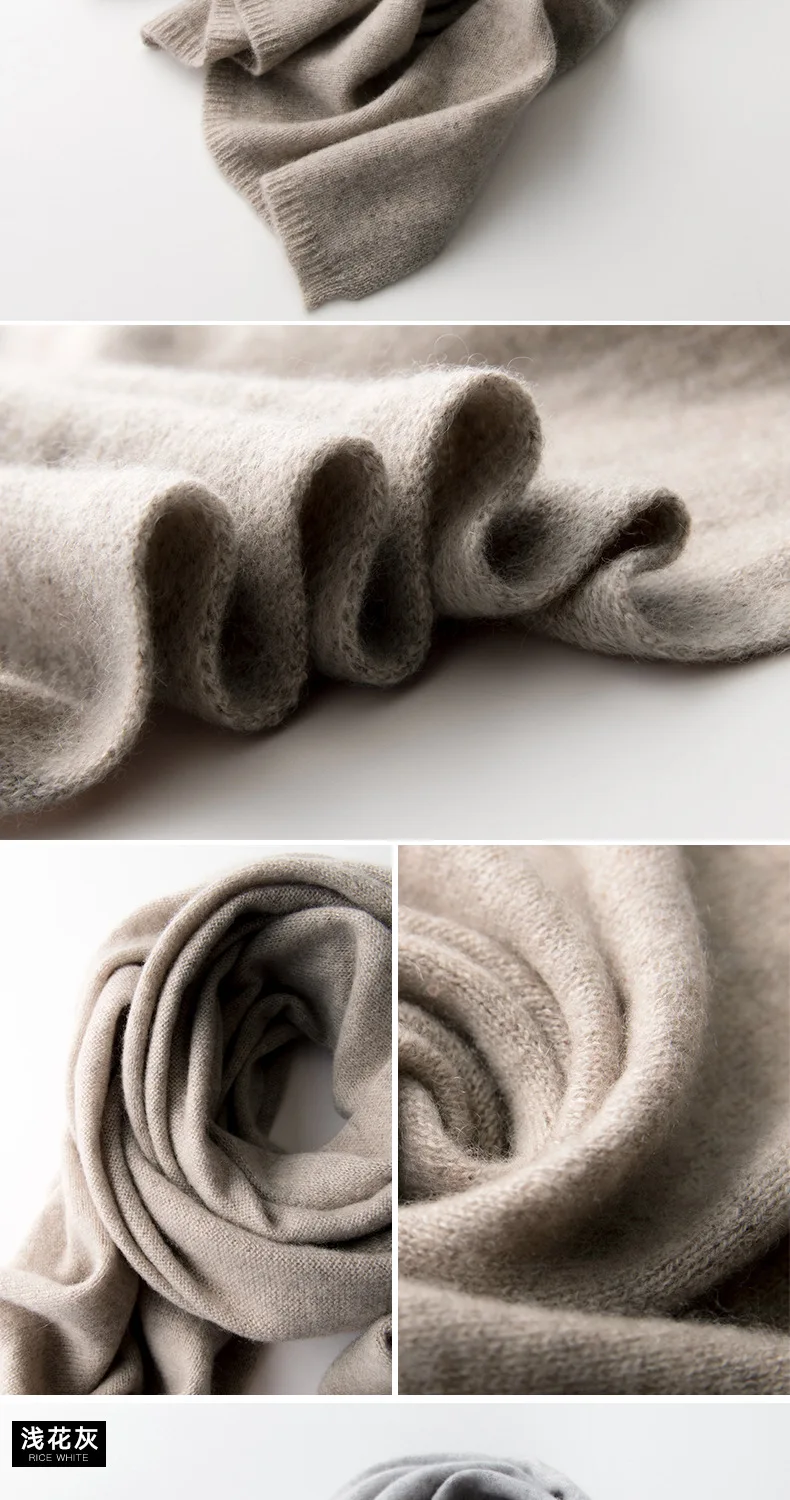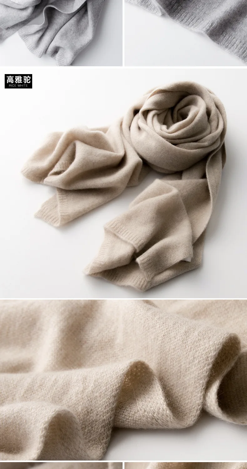 Material : 100%cashmere Size: 50*200cm Weight: 140g/pcs Cashmere is a fine hair from a goat's neck and abdomen called Capra-Hircus. This type of sheep lives mainly on the 15,000-mile high mountain of the West Malaya. The higher the place, the colder the place, the better the quality of the wool produced. Usually, the hair of the sheep growing on the high mountain of the sea otter is used, so the hair quality is finer, the product is thinner and the touch is smoother, and the production is scarce, and the neon is precious.